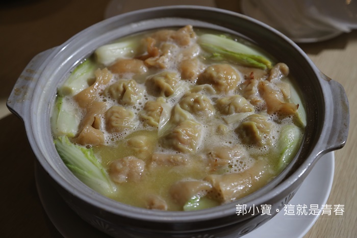 這一鍋湯大概是我今年第一名的湯品了,廣東大菜的經典從烤鴨才開始,第一口入口那溫潤甘醇的滋味真的溫暖我整個心靈,港式餛飩的厚皮口感跟鮮甜內餡也讓我們欲罷不能,這一鍋湯品瞬間就被我們一掃而空。 |