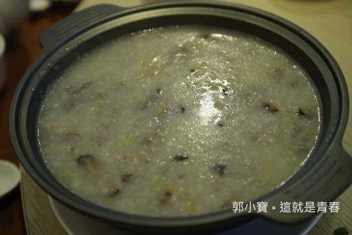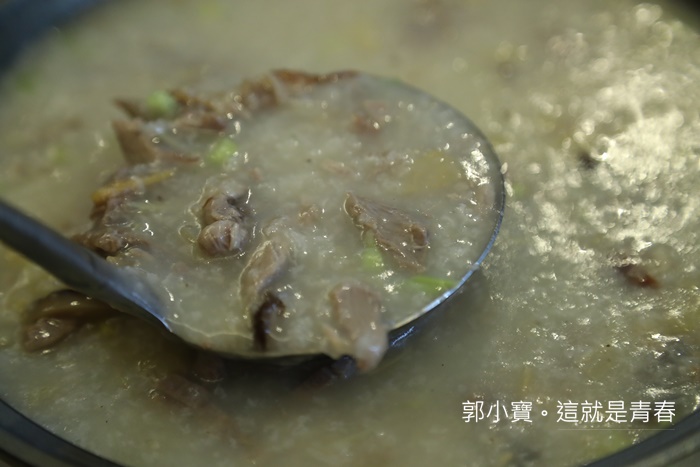 烤鴨兩吃另一吃就是把鴨架子拿去熬粥,鴨骨的滋味完全跟鹹粥融合再一起,一碗接著一晚真的超好喝的。 |