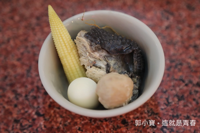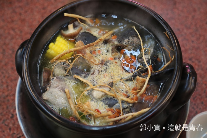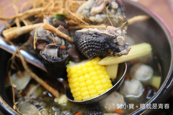 放超多的人參鬚的九尾雞應該較人參雞比較實在,一般的鍋物是只有單純的鍋物,裡面其他食材是我們一開始點的時候店家就會一起下去煮了,只有蔬菜類的會盛盤讓消費者自己下爐,讓我比較推薦的就是它們家的玉米,吃起來不輸給水果玉米還有牛奶玉米的甜度,當場的人每個人都覺得很好吃!