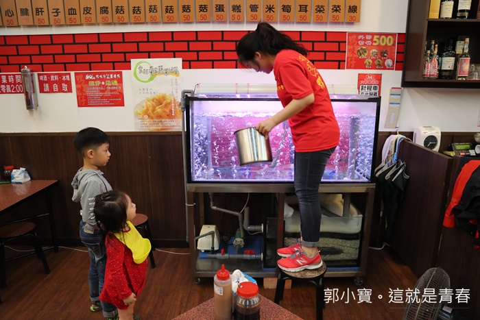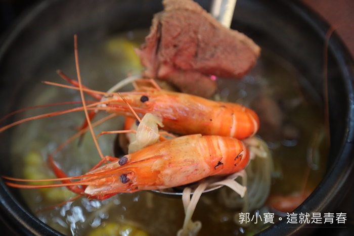 瞬間將活蝦丟下去熬煮,活蝦下鍋前店家會先將活蝦放置冰塊讓它們冷靜一下,下鍋才不會亂跳,大概下鍋個兩分鐘就會全熟了。 |