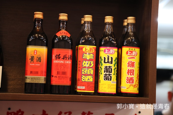 當中的酒櫃還滿吸引我的,有幾瓶滿有趣的,羊奶頭酒是三小,問了老闆娘才知道是店家自己泡的藥酒。 |