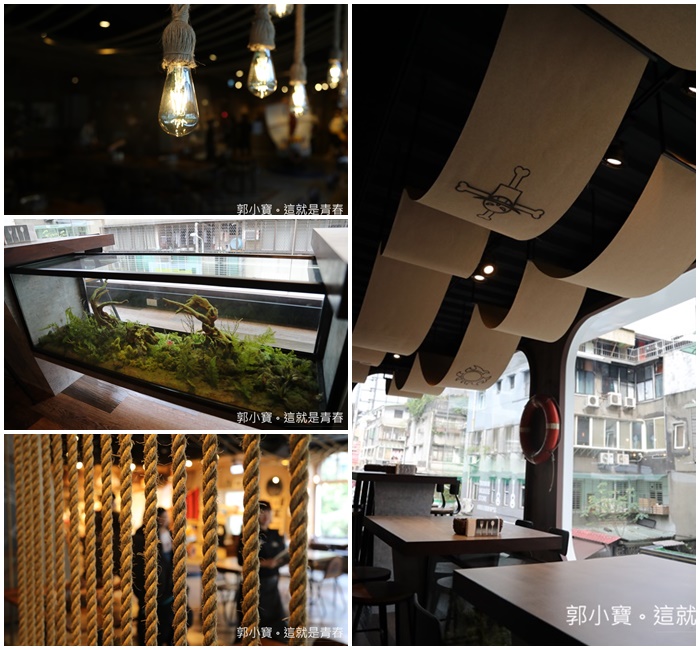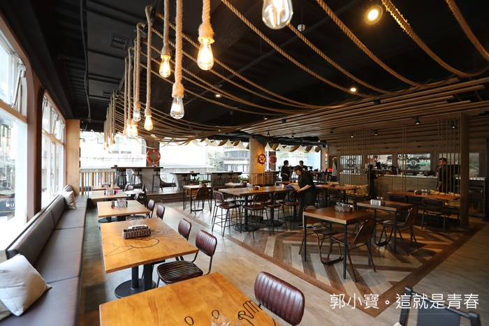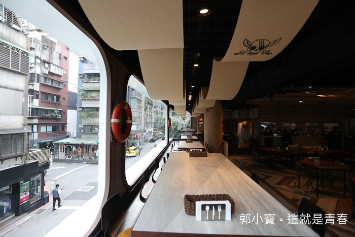 令我頗為驚訝的是二樓的空間打造的還不錯,透明的大玻璃窗有像在海上航行的船一般的大玻璃面,加上其他裝潢及天花板上的木板也有營造出船板的感覺及氛圍,最意外的是其實他們的桌椅之間並不會很擁擠,本來一直以為它們會設超多座位有多少錢就先撈多少錢,看來是真的有想要好好的經營下去XD |