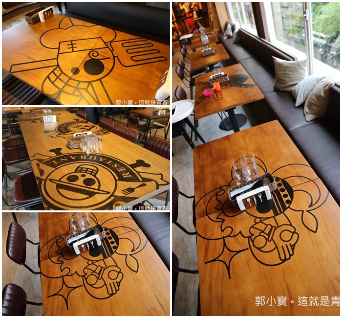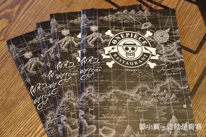 每張桌子都有海賊團的標誌,大部分漫畫裡面出現比較有代表性的海賊標誌都有出現,來這邊我滿建議多一點人一起來的,因為菜單一翻開真的每一種妳都想點來拍一下。 |