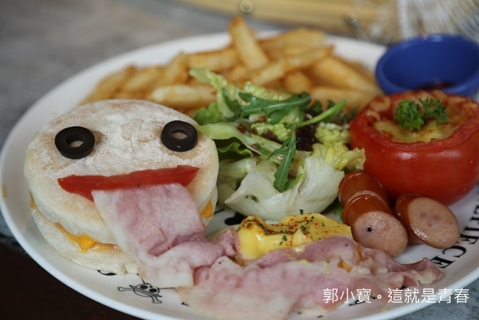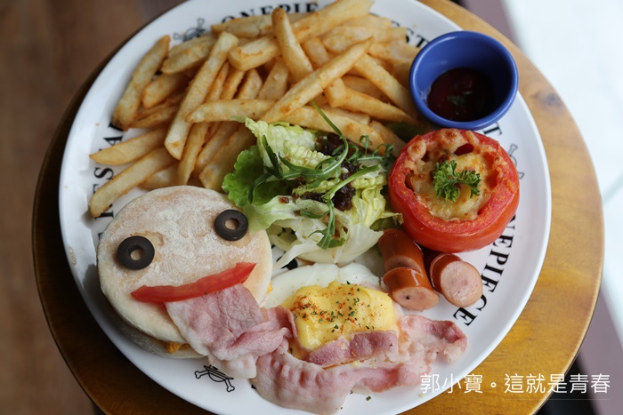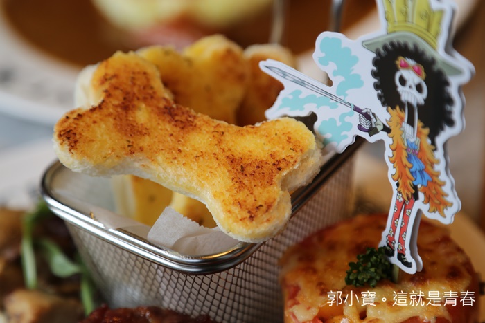 烤番茄上面是起司裡面忘記是甚麼東西切丁,其實我是去拍照的,航海王主題餐廳太多東西可以拍了。