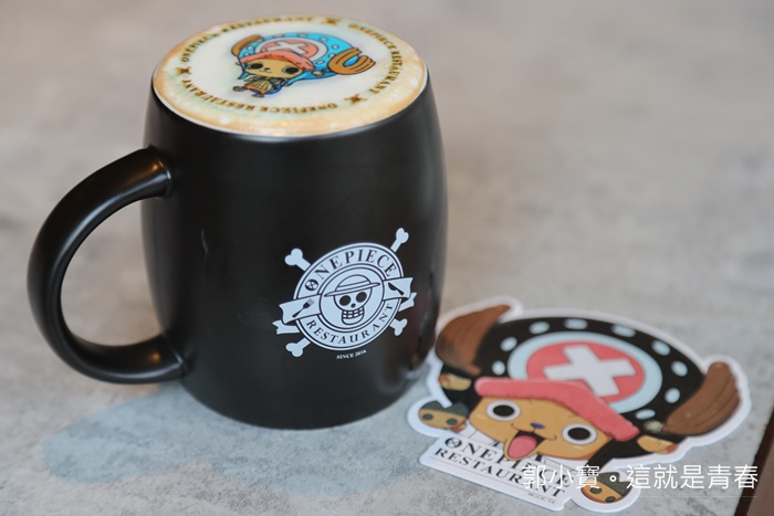 水杯上也有ONE PIECE的LOGO,真的太好拍了,通常只要ONE PIECE迷來到這裡基本上就是相機跟手機比嘴巴還忙了。 |