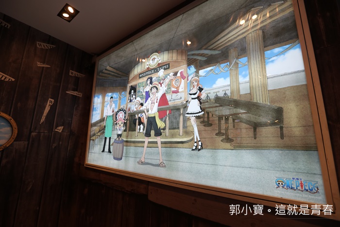 一進入航海王主題餐廳ONE PIECE Restaurant海外一號店就可以看到牆上的壁報相當的大,九位主角都站在這邊歡迎大家了,話說大家可能比較少知道後面的製作過程,通常不管是日本國內還是海外,尾田老師對於代理或是授權的廠商挑選都很嚴格,每個地方的與動畫的連結性還有主題都必須是不一樣的,也就是說大部分台灣的圖跟主題都是重新制定過的,不會有老酒新裝的部分,授權正版的果然就是不一樣,看起來就很漂亮! |