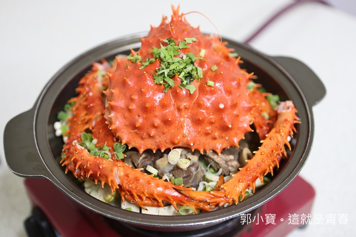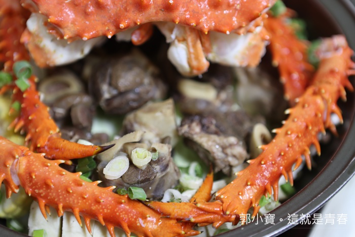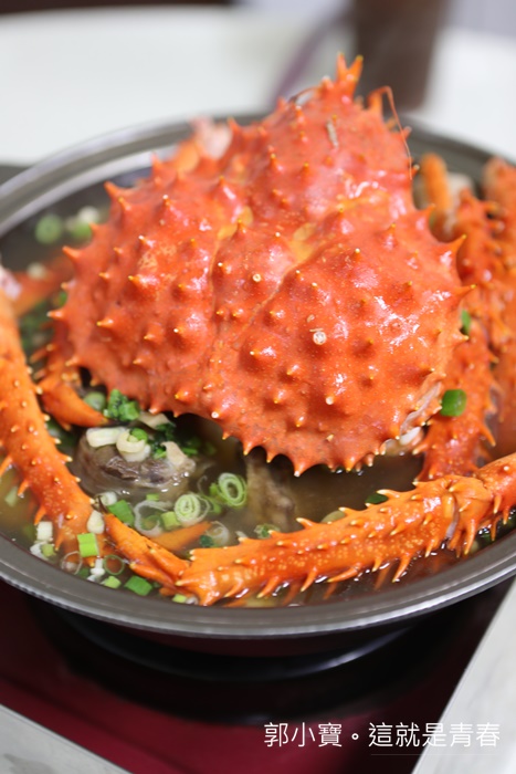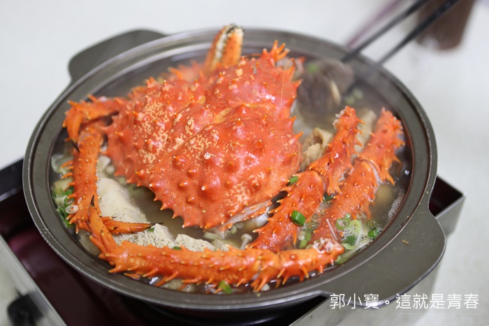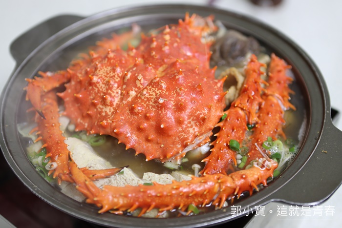 最後跟朋友討論後決定先瞄準這一份帝王蟹精打細算套餐,因為老闆說帝王蟹除了跟羊肉爐結合以外,蟹腳較粗的那一段會拿去焗烤,一蟹兩吃真的很恐怖,加上其他菜色有夠爆便宜的,看看這一鍋真的很誇張!!!! |