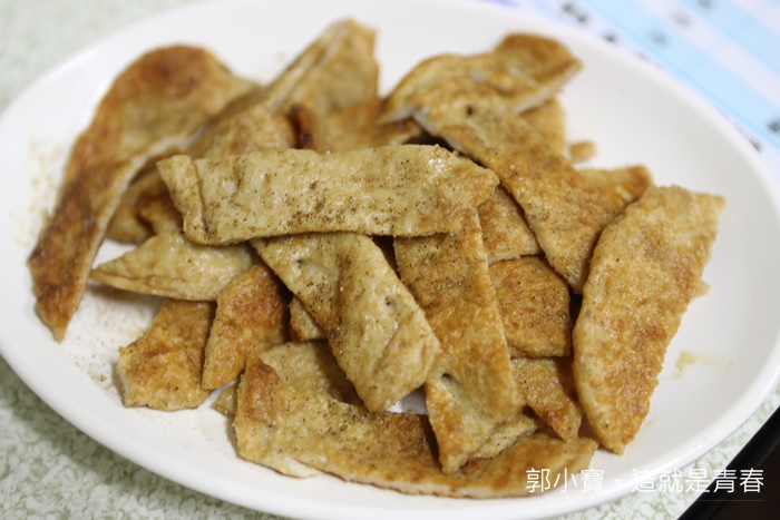 看起來雖然薄,但是放入嘴裡的咀嚼感相當的好,灑點胡椒調味就讓人一口接著一口停不下來,這手工黑輪片真的很不賴。 |