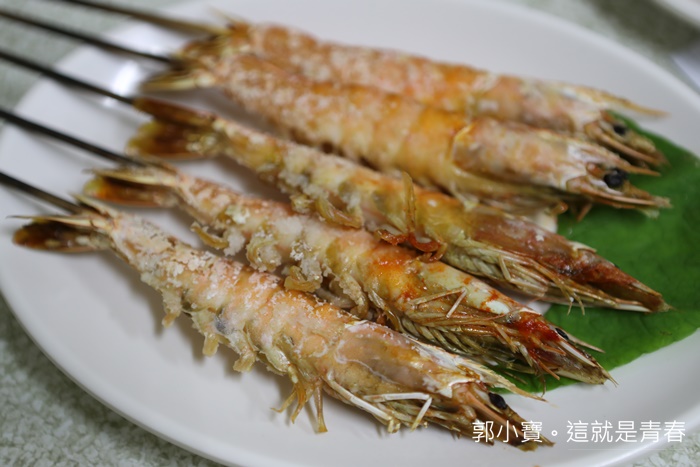 抹上鹽巴就放到烤爐的烤蝦出來每一隻都很漂亮,也不會烤的太乾,蝦殼挺好撥開的,一整盤滿滿的六隻烤蝦,入口也很鮮甜夠滋味。 |