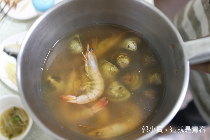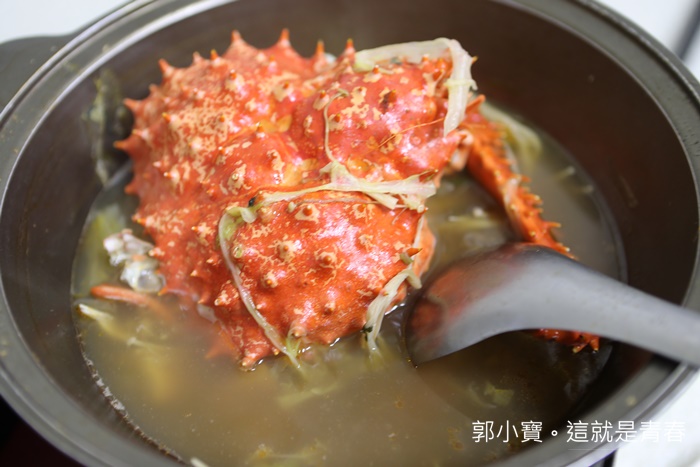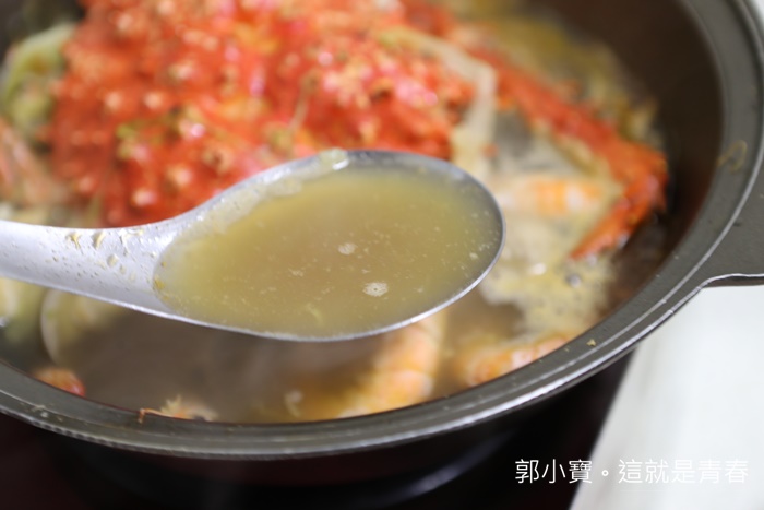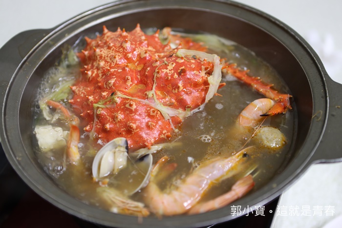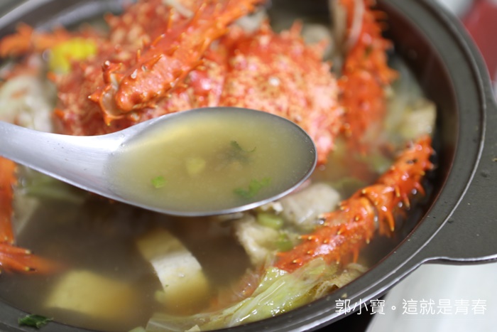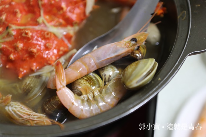 瞬間就被我們加了兩三次湯了,味道在淡一點的時候,我們就叫老闆幫我們加點海鮮料,因為後續單點一隻帝王蟹就要1000了,所以蝦子蛤蠣就加減加了XD |