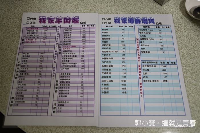 看看炒台前的價目表,各式炒羊肉的部分大約都維持在100左右,跟市內羊肉爐店真的有一段差距,左邊的那招牌不用去看,因為是舊的,現在帶皮羊肉漲價漲太多,所以老闆也撐不住漲價了,不然以前帶皮羊肉一鍋只賣350真的好感動!!! |
