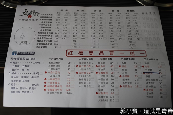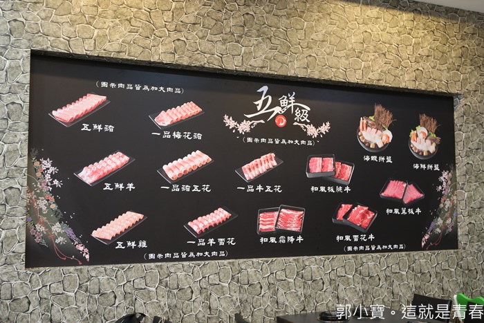 一旁的海報也大大的貼出五鮮級平價火鍋所使用的肉品圖片,比起一般的小火鍋店,五鮮級的品質跟整體環境好上許多。 |