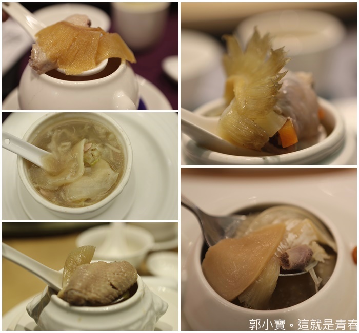 小小抱怨一下,裡面就屬彭園真的比較沒誠意,魚翅是用魚翅皮,左邊中間圖的那一碗,真的沒看到翅,只有皮.......這魚翅皮真的讓人有點無言。