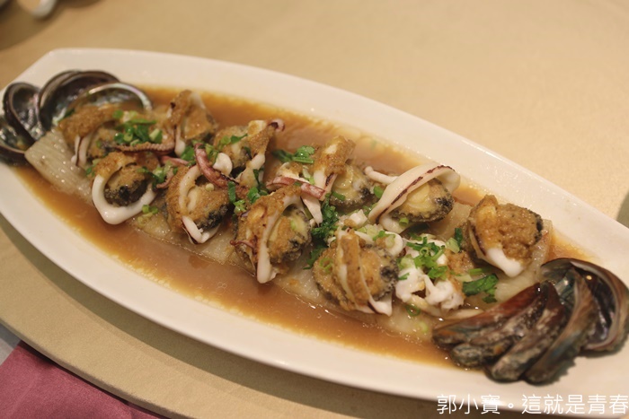 另一道推薦的就是水漾的創意菜色,小鮑魚外面還包了一圈花枝,真的非常的搶眼,我覺得水漾的菜色都很創新,讓人有耳目一新的感覺,且食材一路下來用的都很不錯。 |