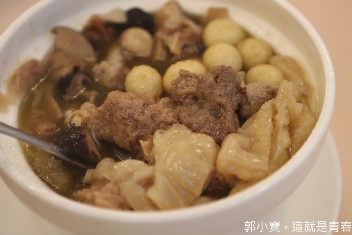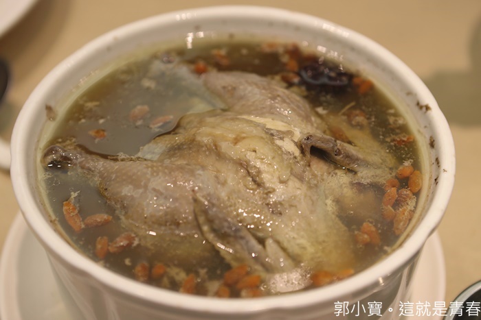 另一個推薦的就是晶宴的湯品,因為他比較特別不是雞湯,所以想要來點不一樣的就可以選擇他了,晶宴的佛跳牆跟一般的佛跳牆也比較不一樣,因為是後湯所以它們家的佛跳牆做的沒有那麼重口味,喝起來還滿爽口的,而且裡面的料相當的多,滿滿的一盅料。 |