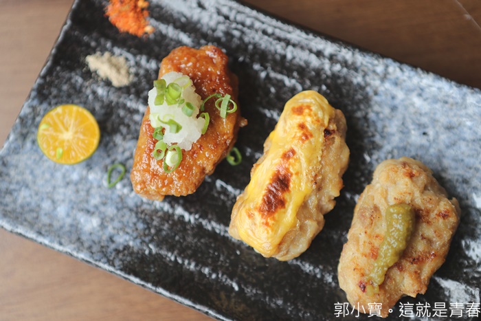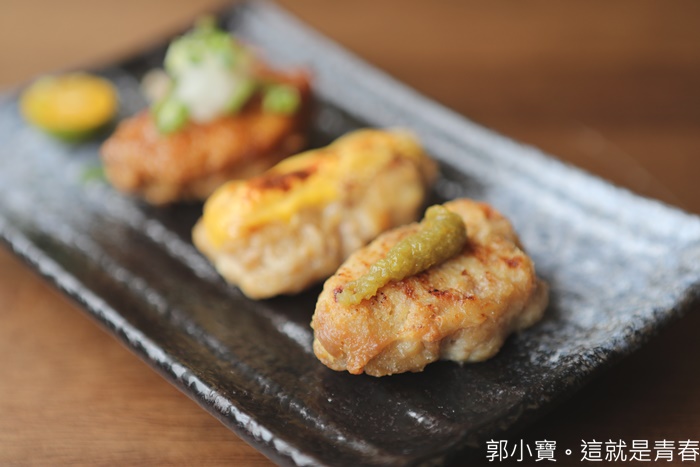 非常亮眼的一道菜,剛送上來的時候覺得這也太美了,三種口味的雞肉有點感覺像是握壽司一般,每一種口味都還滿不錯的。 |