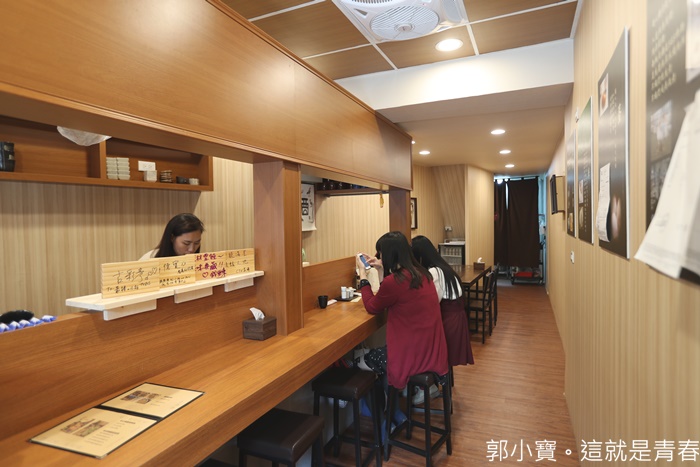 店內的感覺頗為日式,一整排的吧檯桌跟後面的一個四人桌,座位數似乎沒有很多,但是卻是相當的溫馨,我個人還滿喜歡的,吃到一半的時候就一個大爆滿半個空味都沒有,雖然不大間,但是工作人員還挺多的。 |
