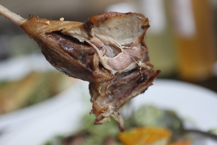 輕輕的用牙齒撕咬就馬上骨肉分離,鴨肉嫩口且芳香美味,入口咀嚼可以感受到油封鴨腿豐富的滋味,那層次感真的一絲一絲的透了出來,鴨皮的部分還帶點脆度,一整個就是滿分到不行。 |
