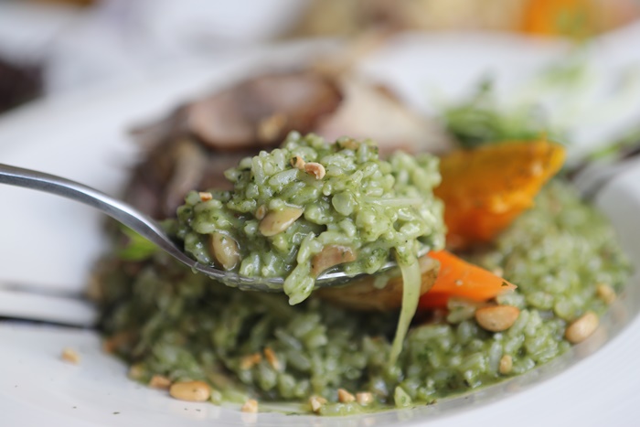 燉飯的部分也是非常濃郁,米粒偏軟還滿符合高雄人的口味,米粒跟松子的結合讓燉飯的滋味也變得更加的豐富,青醬的味道不會太搶戲,跟米粒還有松子一起手牽手的感覺很融洽。 |