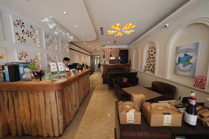 一樓接待大廳就是櫃台,進入大廳有種溫馨的感覺,櫃台人員也相當的親切,不管是房客還是消費者的都服務的非常好,我喜歡他們大量使用原木的裝潢,那原木的大櫃台我也超喜歡的。 |