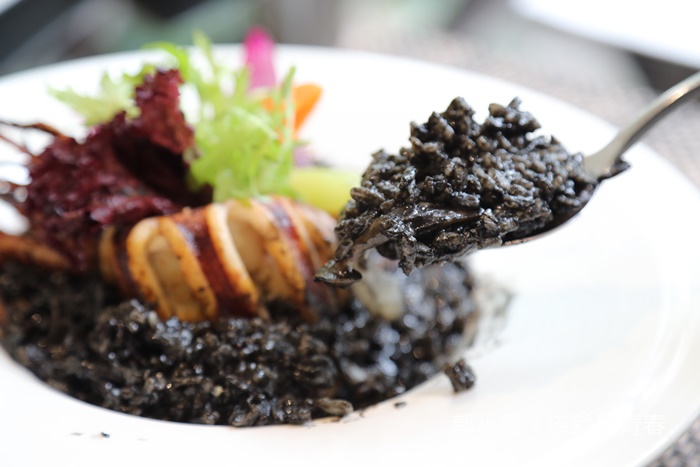 燉飯的口感也是我覺得高雄最剛好的,沒有台式燉飯那麼軟,但是也沒正統燉飯那麼硬,應該說墨魚醬汁緊緊的被吸進米粒裡面,米層吸滿了墨魚湯汁,米心帶點脆度,咀嚼中墨魚的濃郁滋味跟米心的甜味混和,簡直一口接著一口吃個不停。 |