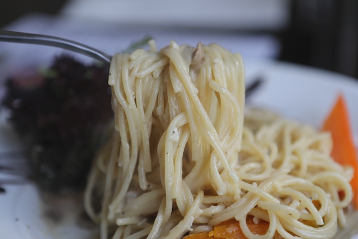 義大利麵吸飽了濃郁白醬,每一口都讓人滿意,加上麵量相當多,所以一個大男生也可以吃很飽,最讓我滿意的是他們家的醬汁都可以緊緊的巴在麵條上麵,這個真的很無敵! |