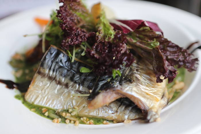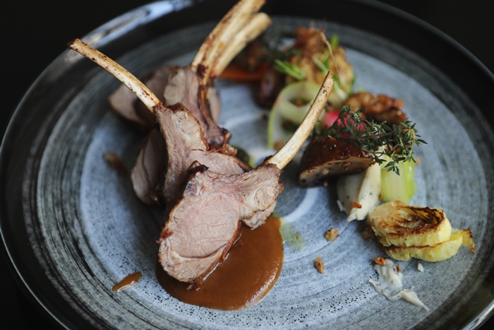 豬排單吃本身就帶點香草豬獨特的香味,豬肉雖然沒有太多油脂卻也不會乾柴,沾上主廚特製的薑味莓果丁香醬汁相當爽口