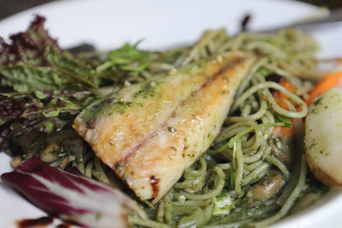 這一份靖魚青醬義大利麵裡面有兩大片靖魚,這價位我也真心覺得很便宜,通常去日本便當店這一樣半片的靖魚就可以賣到160以上了,這邊兩大片還有義大利麵卻只要250元,喜歡吃靖魚的朋友別錯過XD |