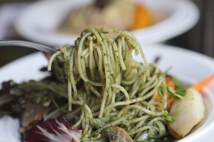 義大利麵的青醬我覺得就普通了一點,雖然可以吃到濃郁的羅勒或九層塔的香氣,但是吃完一整盤就感覺膩了一點,屬於比較重口味的人會比較適合一點。 |