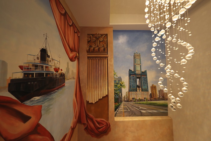 世奇商旅本身就是一棟彩繪商旅,除了每一層樓的彩繪都是不一樣的主題以外,就連樓梯間跟二樓的用餐區都彩繪的相當漂亮,二樓的部分大多都是彩繪高雄的知名地標,有高雄港、八五大樓、愛河夜景等,有時候晚上在這邊吃飯彷彿置身在這些場景中。 |