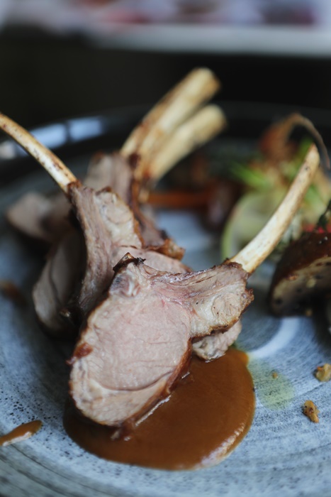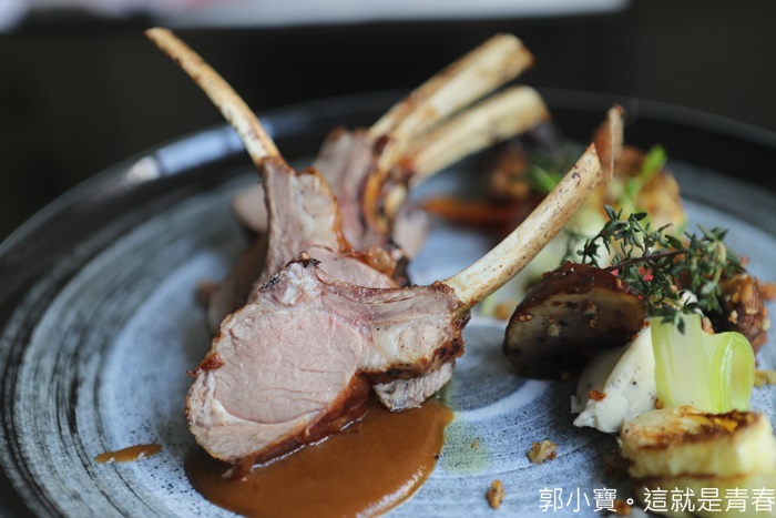 這迷人的羔羊真的很推薦,入口咀嚼沒有半點羊騷味,口感相當的嫩口多汁,沾上主廚特製的陳醋香草醬真的超美味,帶骨小羔羊整根拿起來吃真的讓人超幸福! |
