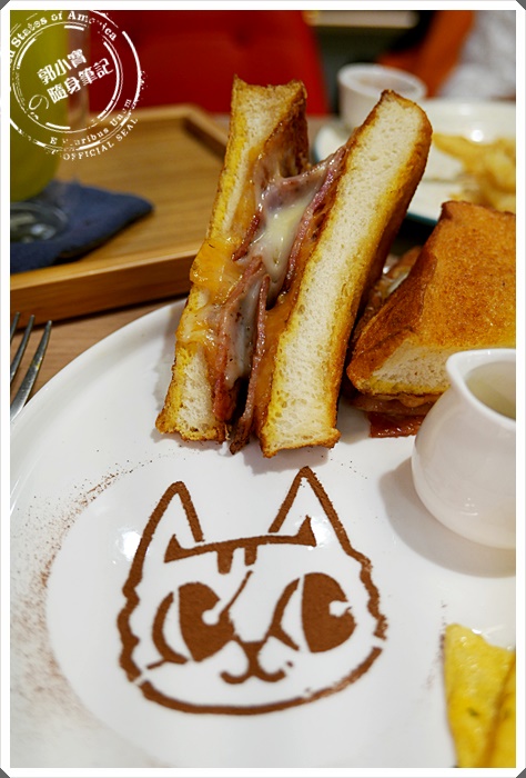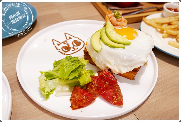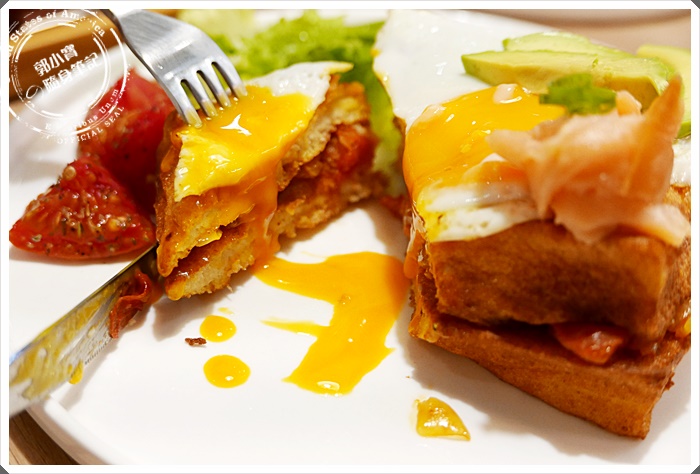 這是寶妹點的假鬼假怪西多士,想要吃飽的朋友就非常的推薦這一道,培根為主的西多士比較像是台港交互混和的產物,在搭配上小小的歐姆蛋以及沙拉生菜,看起來就像是台灣人愛吃的早午餐阿。 |