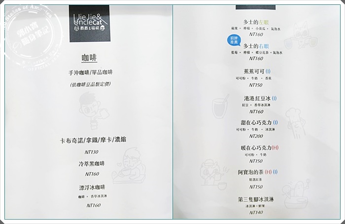 爵爵&貓叔是兩位有共識的合作好夥伴,一位來自台灣中部,另一位卻是來自於香港,當朋友臨時找寶妹過來用餐時,一度粉絲頁打開想說,咦??這不是那個圖文創作的爵爵&貓叔嗎??現在才知道高雄這麼榮幸的被選中在此開業,原本只在網路上的圖畫就可以活生生的出現在你的眼前。 |