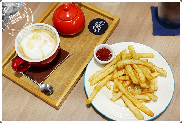 由於姊妹臨時的邀約而來,當寶妹抵達時這兩位朋友已經開始把飲料喝了,完全不等我拍照> <,薯條在爵爵&貓叔商行裡稱作"好多第三隻腳"XDDDDD,實在是非常有趣的阿!朋友的熱拿鐵上還隱約見到到貓咪的圖案~ |