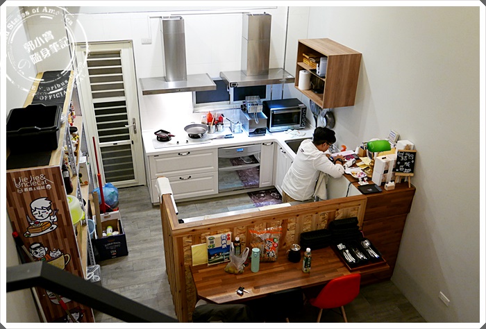 據說開幕後很多粉絲來用餐就是為了一睹畫家爵爵&貓叔的本尊,不過很可惜寶妹來的時候因哲逢過年後,大家都回家鄉去了,寶妹也很喜歡這個躲在後面的廚房設計,看上去很有氛圍感喔^^ |