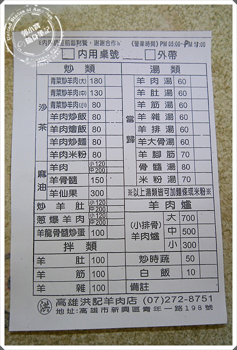 ‧您所在的位置: 郭小寶‧這就是青春 > 郭小寶全省食況轉播 > 日本美食景點輕旅行.桃太郎行程精選 > 『食記美食。高雄新興』洪記羊肉店|青年路上的山羊小招牌|吃得出特色的羊肉店家|