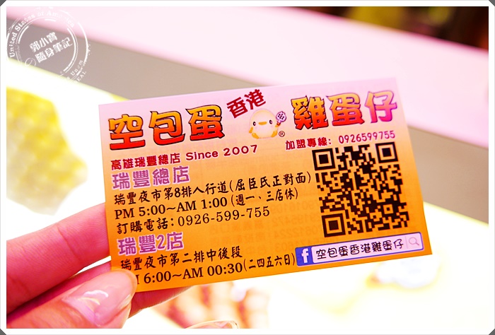 瑞豐香港雞蛋仔總店 電話: 0926 599 755 地址: 高雄市左營區南屏路&裕誠路瑞豐夜市第二排、第八排 開放時間:17:00–00:30 (瑞豐夜市每周一、三休市)