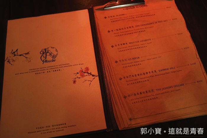 ‧您所在的位置: 郭小寶‧這就是青春 > 郭小寶全省食況轉播 > 日本美食景點輕旅行.桃太郎行程精選 > 『食記美食。台北信義』Placebo 安慰劑小酒館|中式風格西式調酒的混搭風酒吧|推薦特色酒吧!!