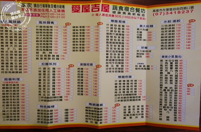 電話:07-341 8237 地址:高雄市左營區自由四路11號 營業時間:AM11:00-PM14:00,PM17:00-PM21:00