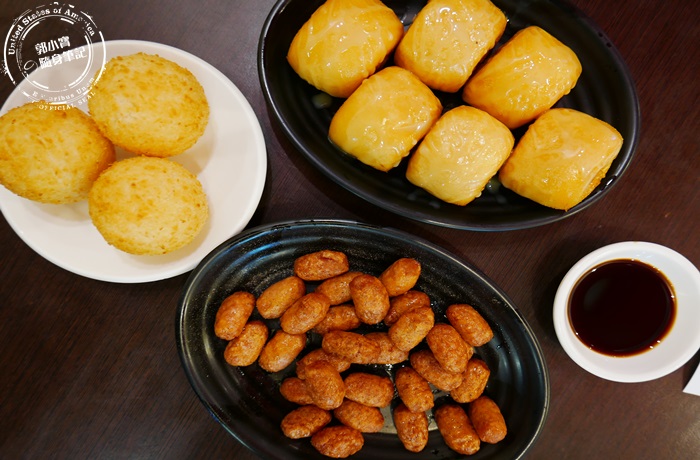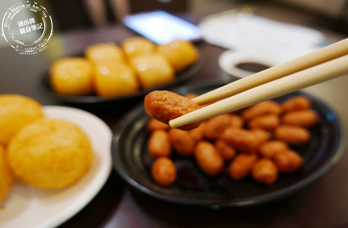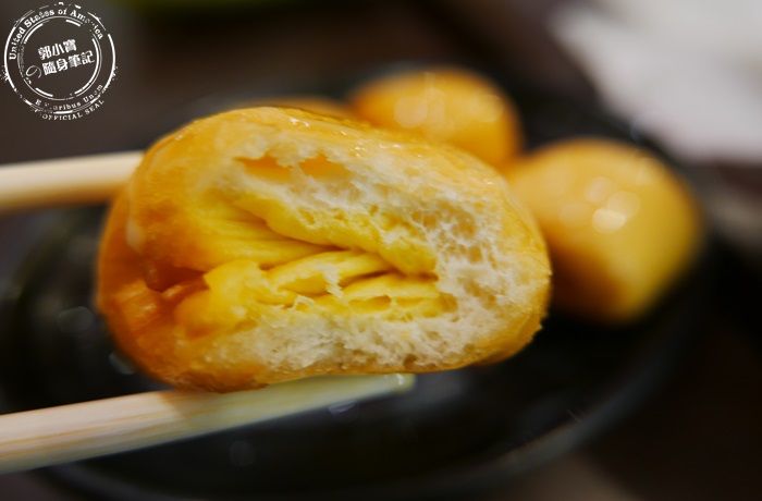 黃金流沙球蠻大一顆筷子難Hold住,這個一定要趁熱吃但是要小心燙,外表看起來像芝麻球表皮軟軟QQ的跟麻糬一樣,整體很酥香軟彈,內餡更是一絕,一口咬下就不停不停的流瀉出來,裡頭內餡香滑綿密細緻,吃的到微微的奶香跟淡淡的甜味,非常的好吃不膩口,這道也蠻厲害的唷! |