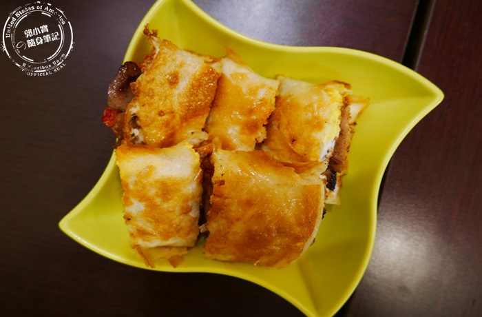 這道實在是太逼人了,蛋餅皮像蔥油餅一樣煎的超級金黃酥脆,裡頭的燒肉先醃再煎至焦香,大口吃下去除了酥香脆還有燒肉釋放出來的香甜味,再搭配韓式泡菜清爽脆感跟些許的辣度,整個超對味而且非常飽口,重點份量超多吃的無敵飽,而且其實不用沾醬就很好吃。 |