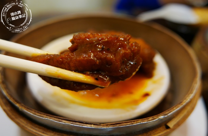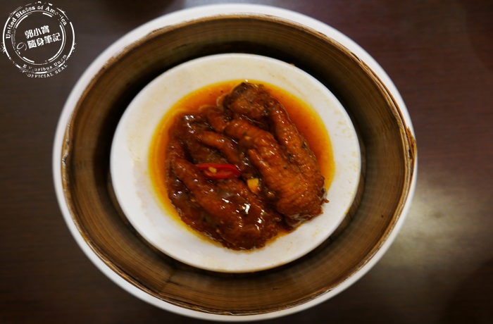 這鳳爪跟在大餐廳看到的沒什麼兩樣,先炸過再調味下去蒸的鳳爪保留了最完整的樣貌,但是咬開軟嫩的超驚艷,啃鳳爪就是享受那骨肉分離的感覺,滿滿的膠質感跟鳳爪的濃郁香氣,那麼的柔軟在嘴巴上散發,雖然很夠味卻不會太鹹還帶有點辣度,香氣更有層次也更開胃。 |