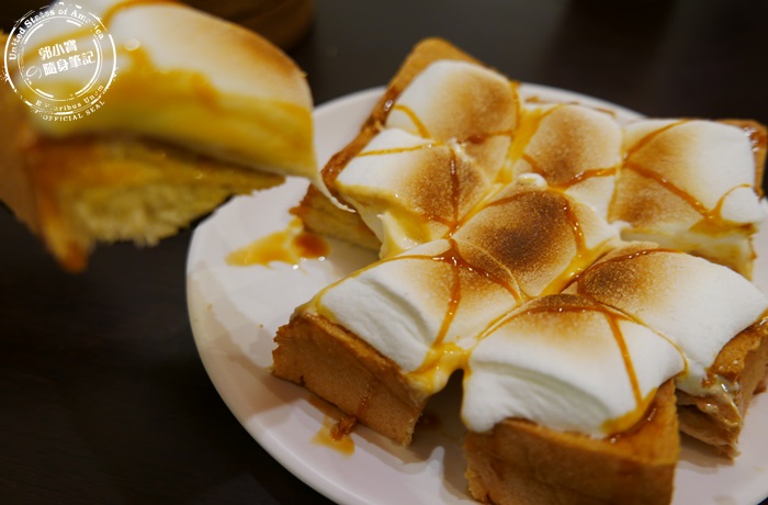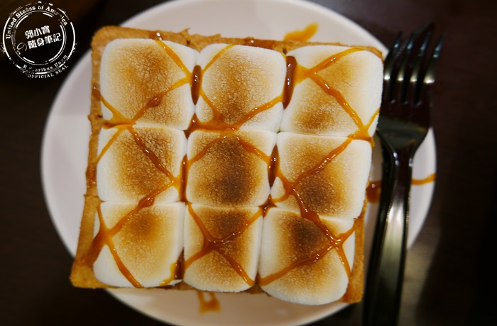 厚片先塗上一層花生醬再放上棉花糖下去做烘烤,之後再淋上焦糖醬,烤過的棉花糖香氣逼人而且變得柔軟微微的Q彈,中間的花生醬夾心,花生醬超濃厚,厚片烤得酥脆,整體吃起來不會過甜過膩,上頭的焦糖醬畫龍點睛,焦糖的香甜跟棉花糖的甜融合在一起,有種戀愛般甜滋滋的感覺。 |