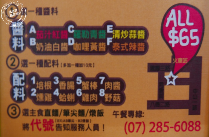 ‧您所在的位置: 郭小寶‧這就是青春 > 郭小寶全省食況轉播 > 日本美食景點輕旅行.桃太郎行程精選 > 『食記美食。高雄三民』派諾尼義大利麵 |主食隨意搭配醬料配料均一價65圓|平價超值深受學生族群喜愛|