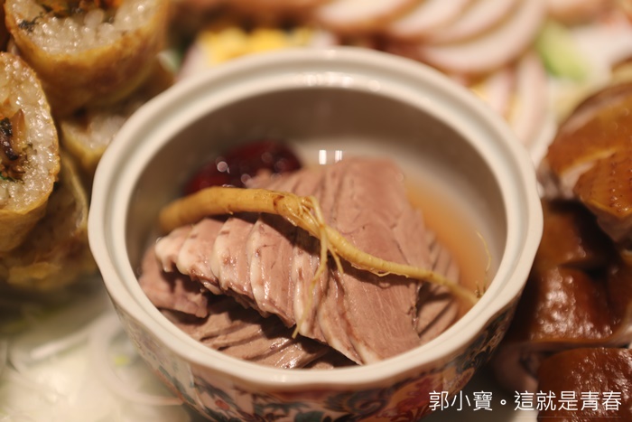 不管是甘蔗燻雞還是小卷蛋黃還有鮑魚等都料理的非常不錯,入口層次分明且滋味豐富,每一口都是濃濃的古早味,這些也都是屬於功夫菜,進入第一道熱菜就有讓我眼睛為一亮的感覺,人參豬心非常特別。 |