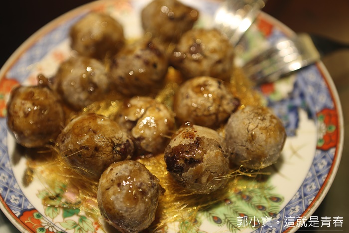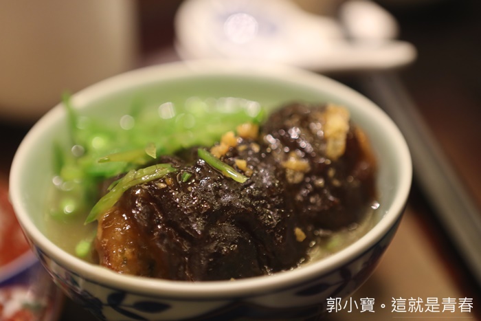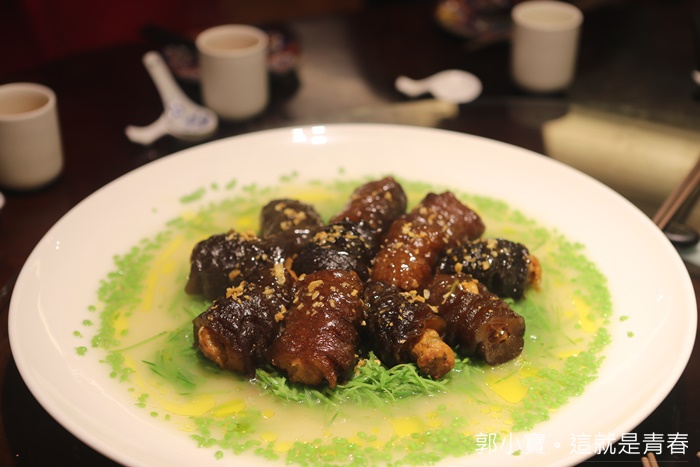 印象中沒記錯的話這好像是台南日據時代有家酒樓餐廳的名菜,第一眼我還看不出來萬兵圍城的意思在哪,後來想到那綠色的豆子應該是古語說的撒豆成冰,湯汁是護城河,烏參代表城,老實說這一到我超愛,少數擠得上我人生中前三名的烏參品質,裡面又灌滿了蝦漿,那口感真的讓人超愛的,推薦! |