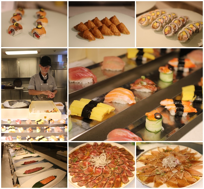 當然還有少不了的日本料理區,除了有新鮮的生魚片以外,還有師傅現場當處捏出來的握壽司跟捲壽司,和風牛肉也很推薦。 |