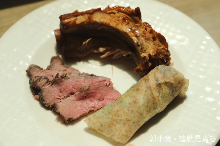 不能錯過的肉品就屬這三樣最經典,霸王櫻桃烤鴨包的很大分,一口咬下可以吃到櫻桃鴨那美味的鴨肉以外,餅皮也很有口感,搭配生蔥跟甜麵醬一整個大滿足,肋骨的部份本身醃漬的相當入味,一口接著一口也是很滿足,還有香烤美國牛也非常夠水準,這三樣肉品不管妳在哪間餐廳單點幾乎每一樣都要好幾百元甚至千元,現在隨便妳嗑到爽為止XD |