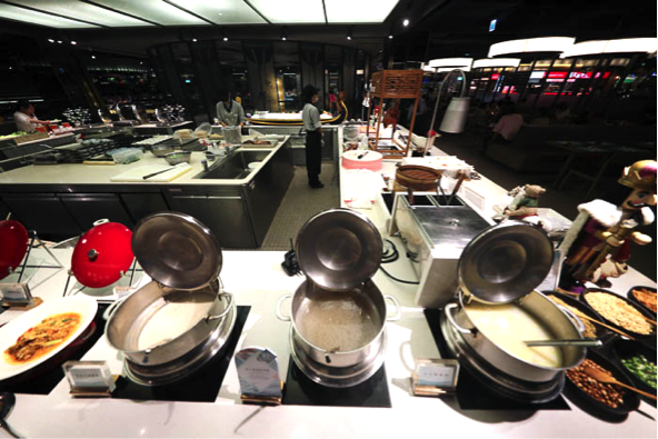 位於11樓的饗食天堂幾乎佔據了美食街一半的坪數,每到用餐時間總是人潮滿滿,這一天特別提早到了排在第一位,在外面排隊依稀可以看到裡面的廚師忙著備料,這時候香味就已經一陣一陣的傳來了。 |