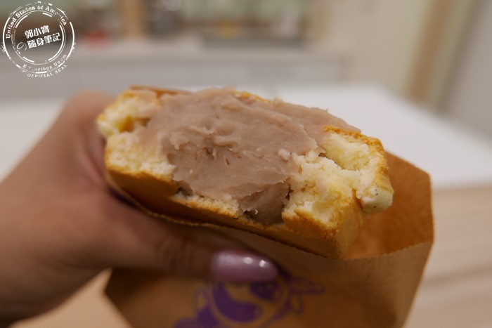 芋頭的內餡也是多到爆炸,而且感覺得到真材實料,似乎完完全全就是用芋頭壓製成泥,口感軟綿細緻,芋香十足不會太過甜膩,是艾編相當喜歡的芋泥,大家絕對不難發現,那中心點的外衣,沒咬上一口那內餡因擠壓就噴發一次,在吃的過程中,好幾次都覺得快Hold不住那爆漿的感覺,這個比一些外面的芋泥蛋糕捲還要好吃,而且方便快速許多,重點又不用買一整條怕吃不完,這樣一個紅豆燒就能滿足甜點胃。 |